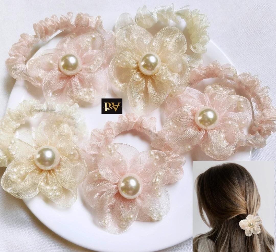"Pearlfect Scrunchies! ???????? Organza Tissue Pearl Flower Scrunchies ???????? Elevate your style with these trendy hair accessories! ???????? Perfect for kids, teens, and adults Available in 2 gorgeous colors: Pink & Cream Each Add a touch of elegance and charm to your look!"