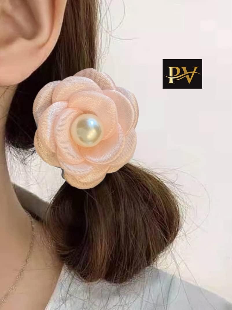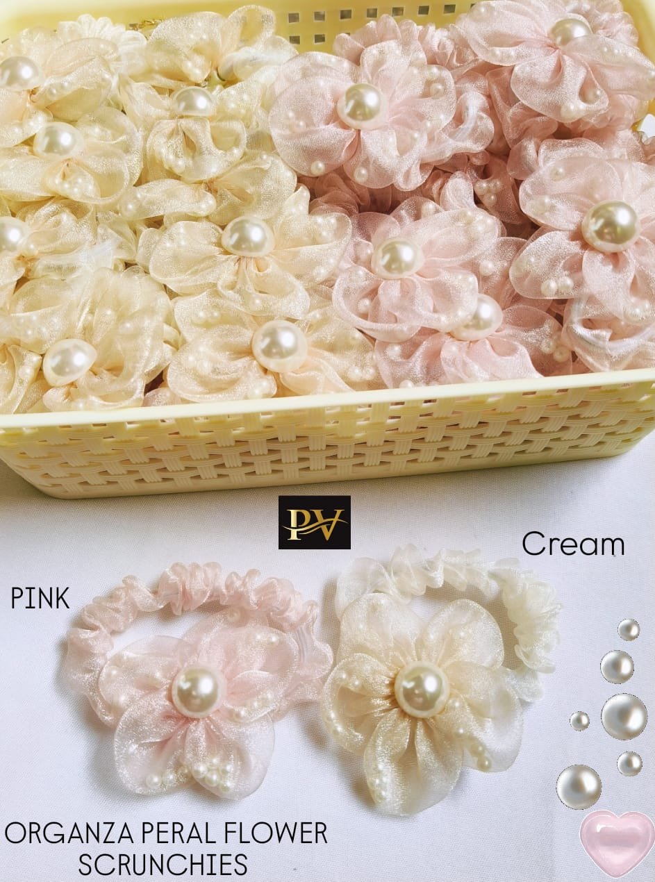 Organza Tissue Pearl Flower Scrunchies ????????